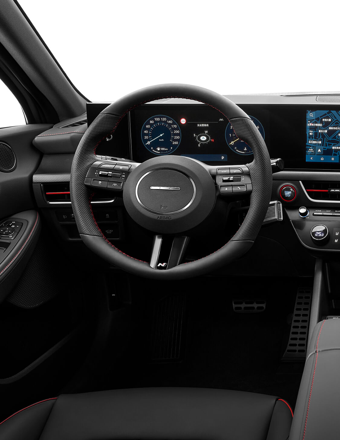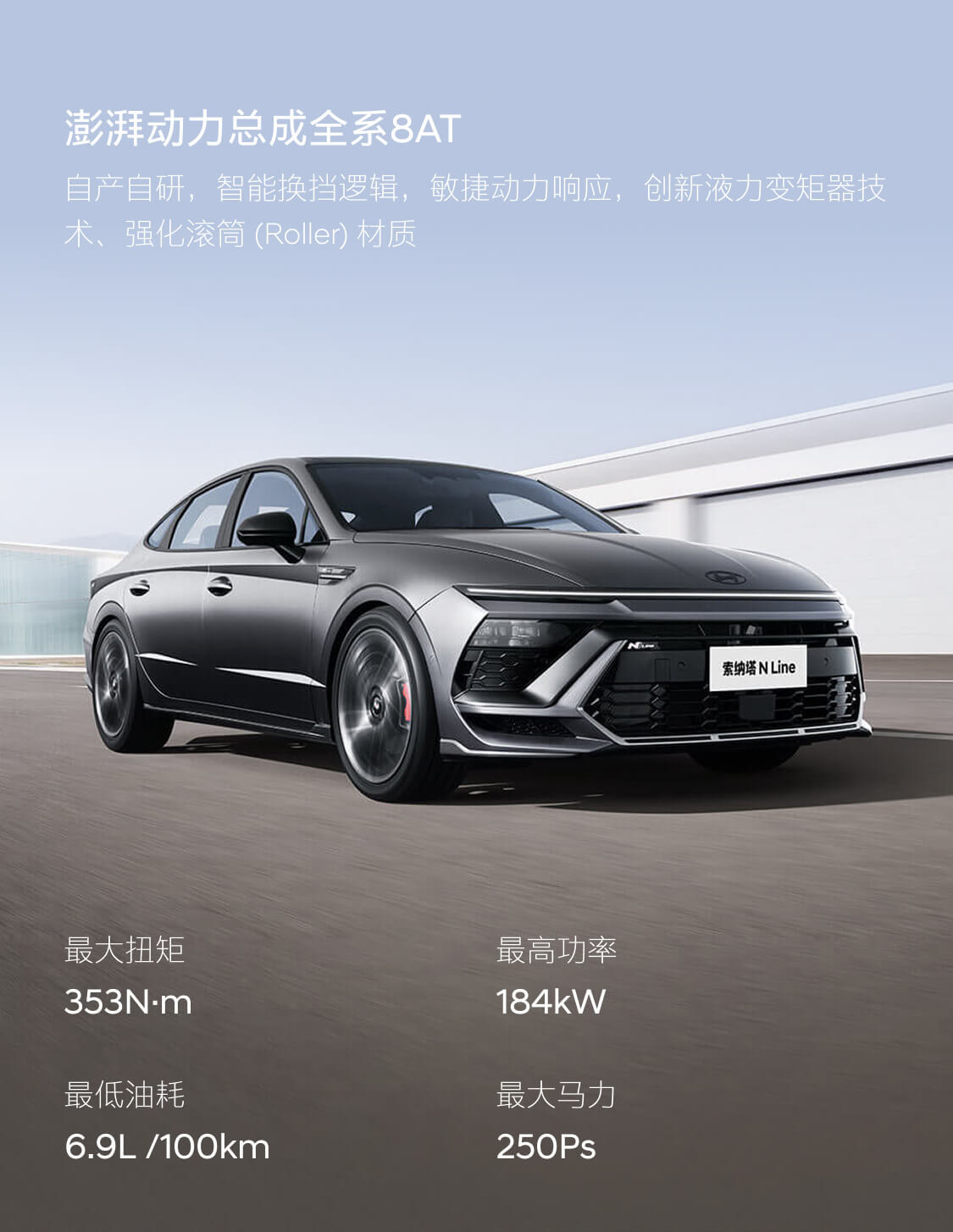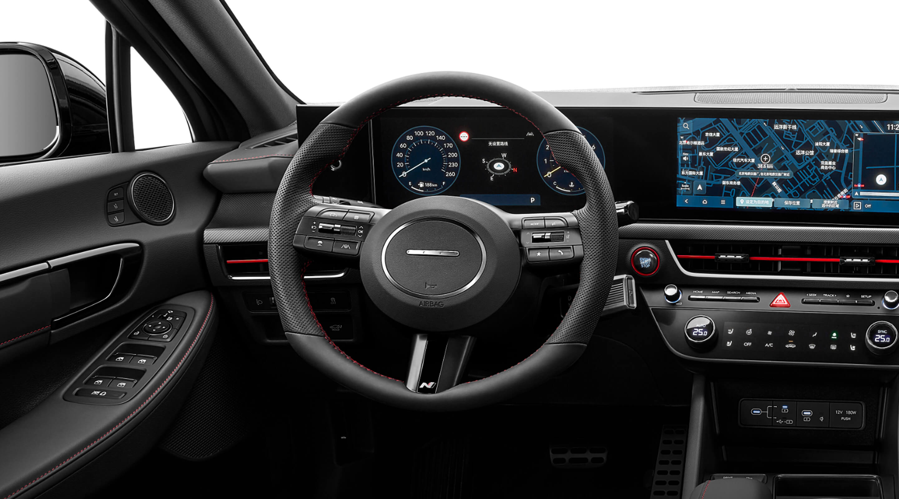 N Line 标識、參數化寶石前格栅、競速導流尾翼、紅色縫線、車門迎賓踏闆、19英寸刀鋒輪毂、紅色卡鉗、雙邊四出運動排氣、N Line 運動方向盤、專屬運動座椅、儀表盤 N Line 專屬參數信息等
